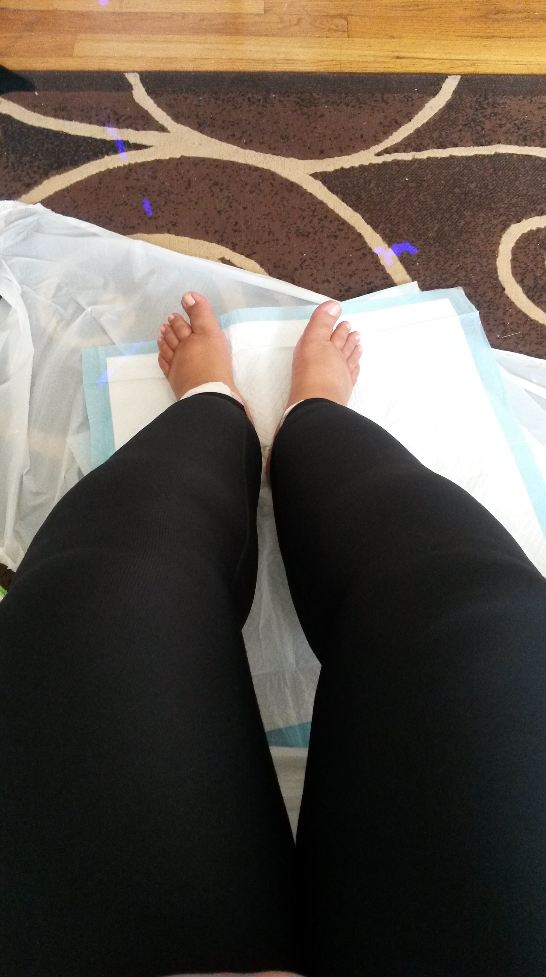 I learned a trick for leaving the surgical facility and getting out of the car upon arriving home, or for the first night! Lesson learned from stepping out of the car and leaking all over the driveway! *TIP* Have your caregiver put a puppy pad under each foot when you step out of the car because by the time you get home it will be ready to leak more! I fashioned a quick “puppy pad shoe” when I realized I would leak all the way going into the house. I did this by placing the puppy pad under my foot and my foot into the center of the pad. While my husband held the corners of the pad up around my ankles, we wrapped bandage tape all the way around my ankle to secure it. This way, If I leaked while walking, It went right into the pad! Ladies and gentlemen, “Puppy Pad Shoes!”