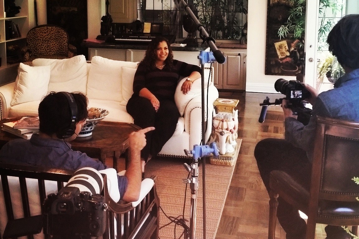 Here’s a photo from behind the scenes filming at Dr. Amron’s beautiful Beverly Hills home!